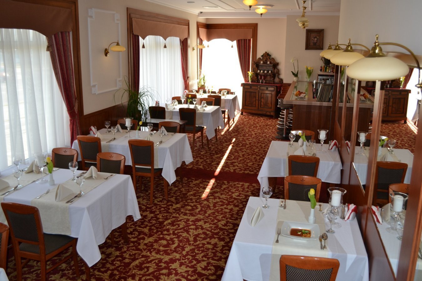 Restauracja Róża Wiatrów to idealne miejsce na kulinarną podróż po daniach kuchni polskiej i regionalnej w atrakcyjnych cenach. Tradycja i kultura kulinarna to ważny element dziedzictwa kulturowego i istotna baza budowania wizerunku i atrakcyjności regionu. Oryginalny smak kuchni podlaskiej wynika ze swoistej mieszanki kultur i różnorodności tradycji kulinarnych skupionych w tym rejonie. Nasi wykwalifikowani kucharze z wieloletnim doświadczeniem dbają o to, aby potrawy przygotowywane były z naturalnych, świeżych produktów lokalnych dostawców, a ich smak i wygląd zadowalał nawet najbardziej wyrafinowane gusta smakoszy. Kulinarną wizytówką naszej restauracji jest Kaczka z burakami, żurawiną i jabłkami, Ozory wołowe, Pierogi z żubra, Flaki wołowe z chipsem kindziuka, Babka ziemniaczana - danie regionalne oraz cieszący się dużym uznaniem Gości, Odymiony lub tradycyjny Tatar wołowy.